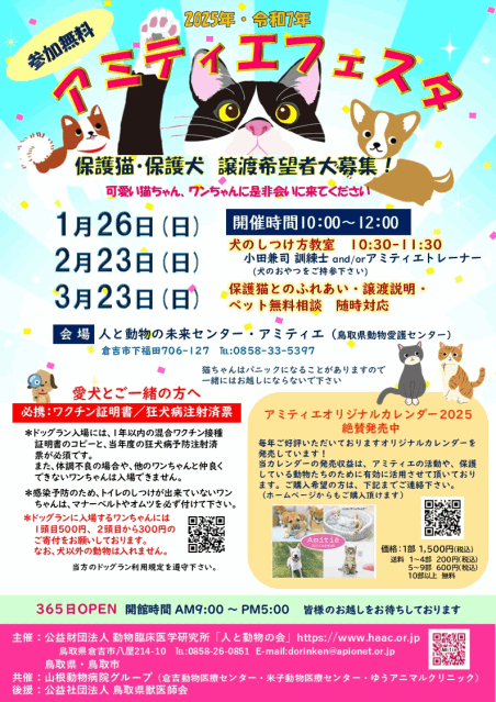 2025年アミティエフェスタ 今年の開催のご案内 詳細は公式ホームページをご覧ください。 あなたのかわいい伴侶が見つかるかもしれません(^^♪