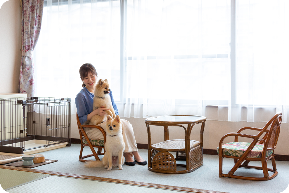 大切な家族のわんちゃんとお部屋もお食事もずっと一緒の温泉宿です。